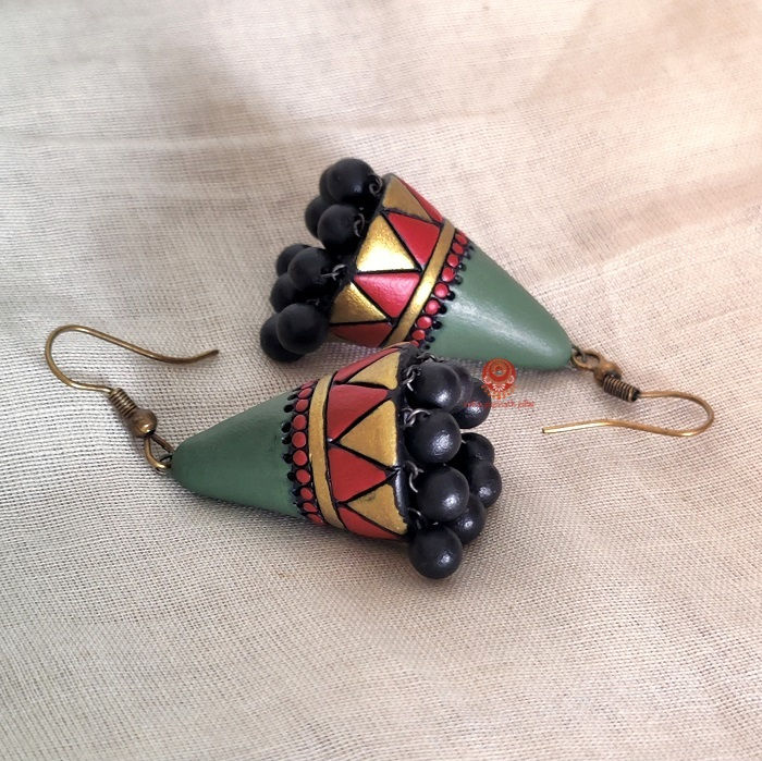 Conical shaped Terracotta jhumkas in 3 color variants: