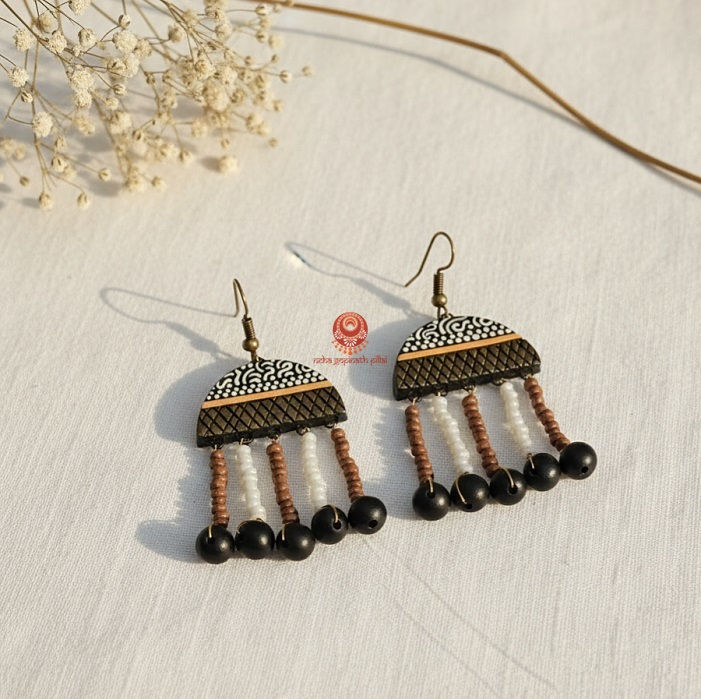 These exquisite dangle earrings are a harmonious blend of rustic charm and vibrant elegance. These earrings exude a unique, artisanal charm, perfect for adding an eclectic touch to an outfit.