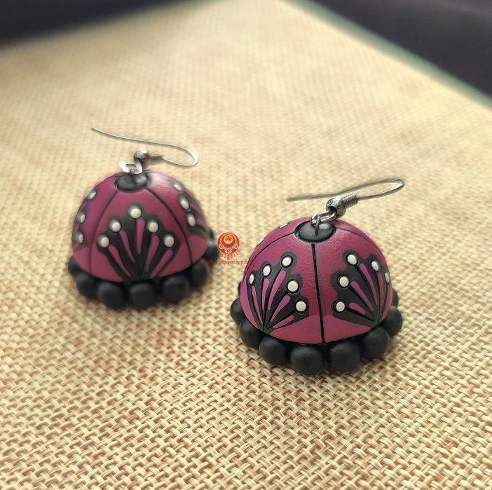 'Purple pop' - Terracotta Jhumkas in shades of purple and a hint of white.